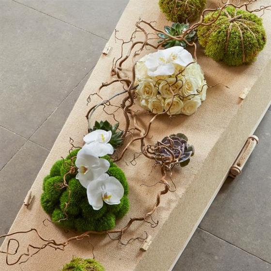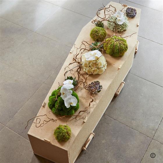 This innovative coffin tribute features individual-linked heavenly spheres that allow each family member to express a separate, personal declaration of love. The entwined branches symbolise the binding that weaves the family together.